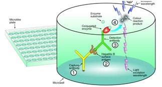 1971年Engvall和Perlmann發(fā)表了酶聯(lián)免疫吸附劑測定(enzyme linked immunosorbent assay,ELISA)用于IgG定量測定的文章,使得1966年開始用于抗原定位的酶標(biāo)抗體技術(shù)發(fā)展成液體標(biāo)本中微量物質(zhì)的測定方法。這一方法的基本原理是:①使抗原或抗體結(jié)合到某種固相載體表面,并保持其免疫活性。②使抗原或抗體與某種酶連接成酶標(biāo)抗原或抗體,這種酶標(biāo)抗原或抗體既保留其免疫活性,又保留酶的活性。在測定時,把受檢標(biāo)本(測定其中的抗體或抗原)和酶標(biāo)抗原或抗體按不同的步驟與固相載體表面的抗原或抗體起反應(yīng)。用洗滌的方法使固相載體上形成的抗原抗體復(fù)合物與其他物質(zhì)分開,最后結(jié)合在固相載體上的酶量與標(biāo)本中受檢物質(zhì)的量成一定的比例。加入酶反應(yīng)的底物后,底物被酶催化變?yōu)橛猩a(chǎn)物,產(chǎn)物的量與標(biāo)本中受檢物質(zhì)的量直接相關(guān),故可根據(jù)顏色反應(yīng)的深淺刊物定性或定量分析。由于酶的催化頻率很高,故可極大地地放大反應(yīng)效果,從而使測定方法達(dá)到很高的敏感度。